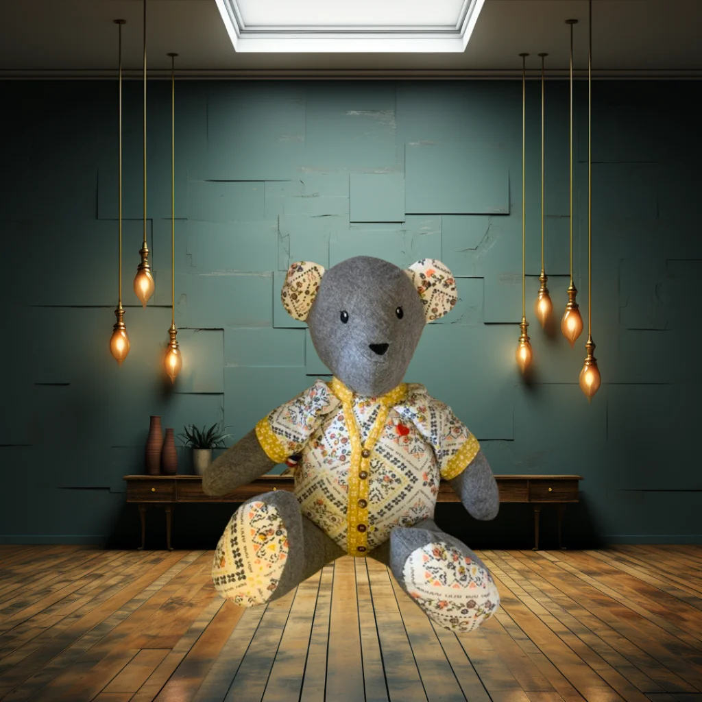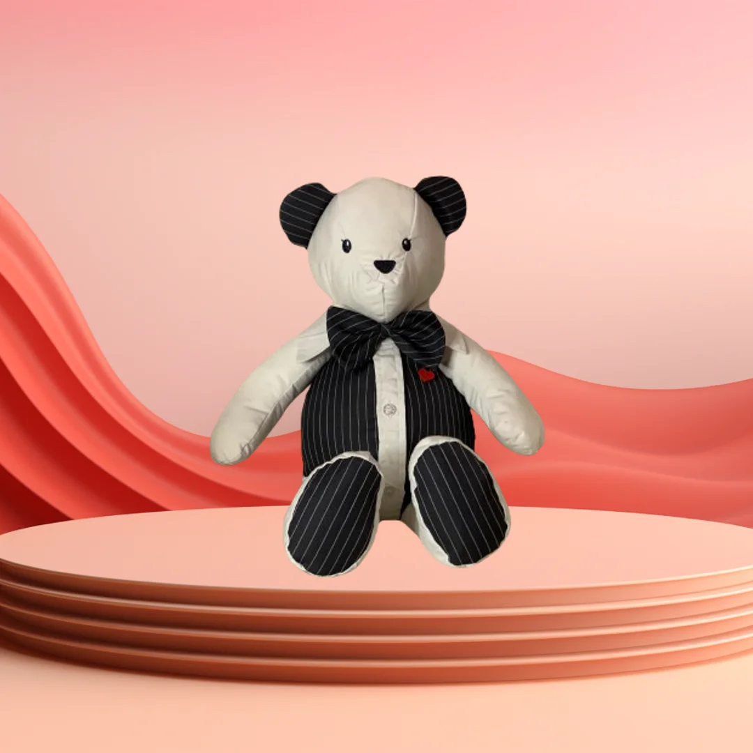 Lorsque notre fils, a joué le rôle du garçon d’honneur lors de notre mariage, son costume était si charmant qu’il semblait tout droit sorti d’un conte de fées. Après le mariage, l’idée de le laisser prendre la poussière dans une armoire nous semblait impensable. C’est là que « Ours de Cœur » est entré en jeu, transformant le précieux costume en un magnifique ours de mémoire.